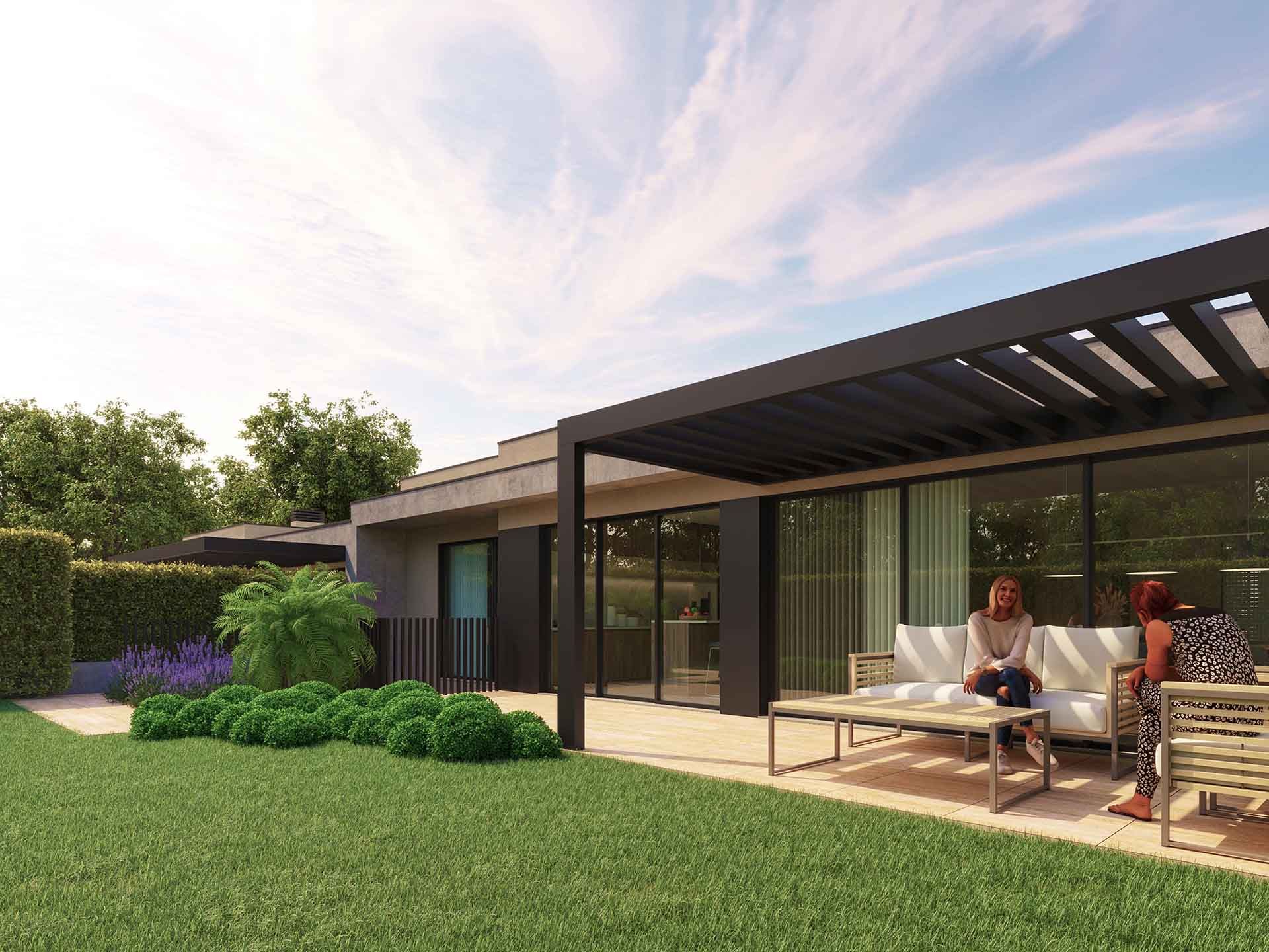 9 moradias térreas com arquitetura sofisticada, construídas com materiais de elevada qualidade e acabamentos de excelência, que garantem conforto e durabilidade.