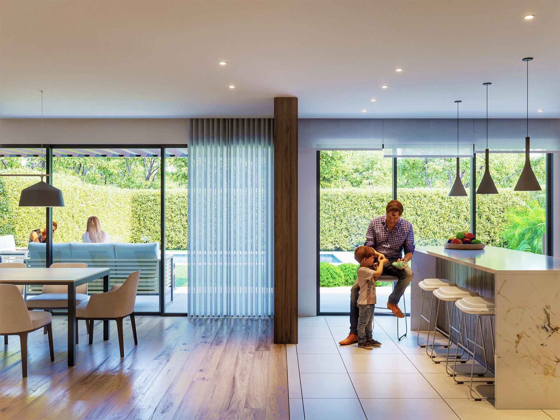 As principais áreas sociais e privadas estão dispostas no piso térreo, garantindo uma vivência prática e harmoniosa.